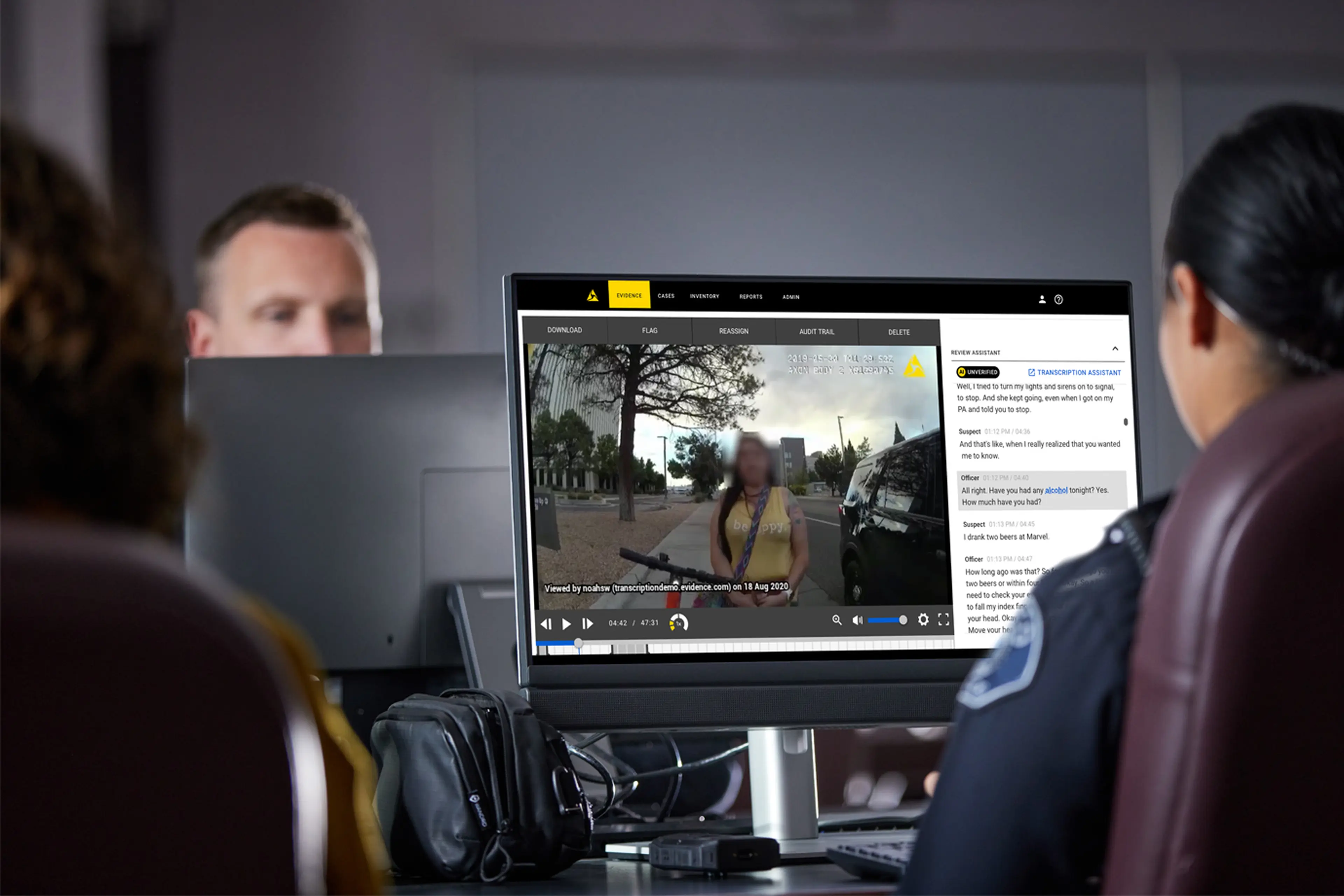 Turn hours of evidence review into minutes with time-synced transcripts. Search conversations, jump to key moments, and streamline review workflows.